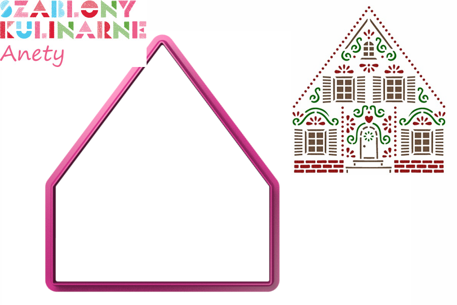 Kształt: domek z piernika 3D - przód + szablon 3-częściowy