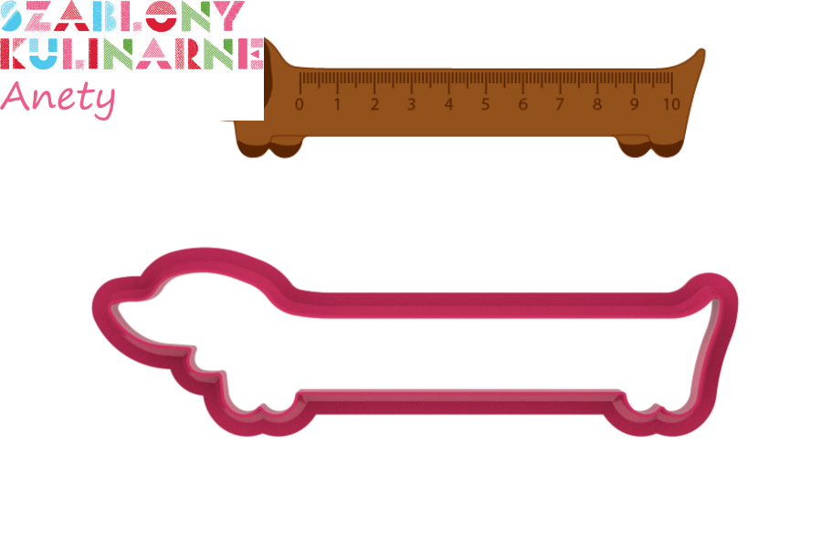 Kształt: jamnik - linijka (do uzyskania proporcji linijki najbardziej odpowiedni jest jamnik o długości 15 cm oraz 18 cm)