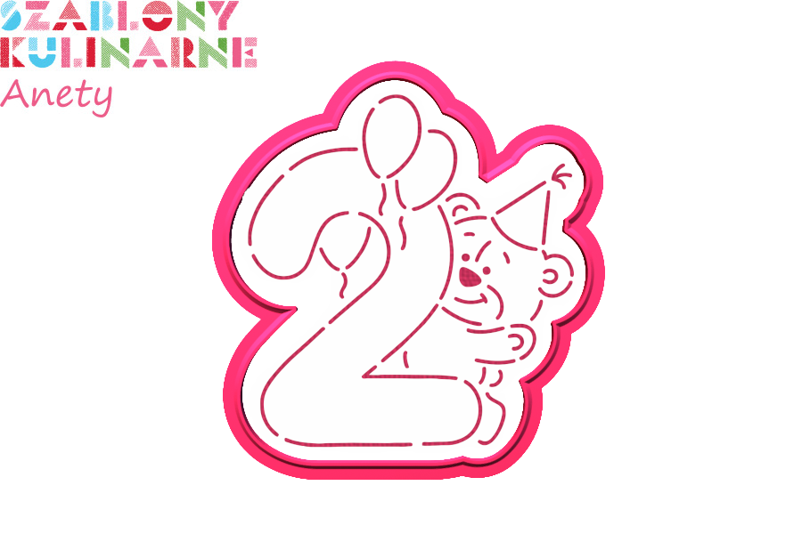Foremka URODZINOWY MIŚ Z CYFRĄ 2 + szablon
