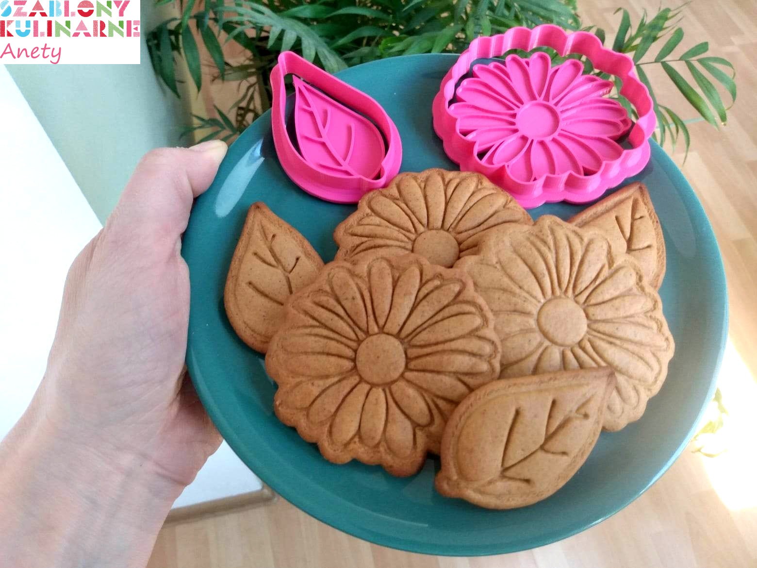 Wielkość: stempel rumianek ma 7 cm (w dłuższym wymiarze), stempel listek ma 6 cm (w dłuższym wymiarze) zaś foremki są kilka milimetrów większe od stempli
