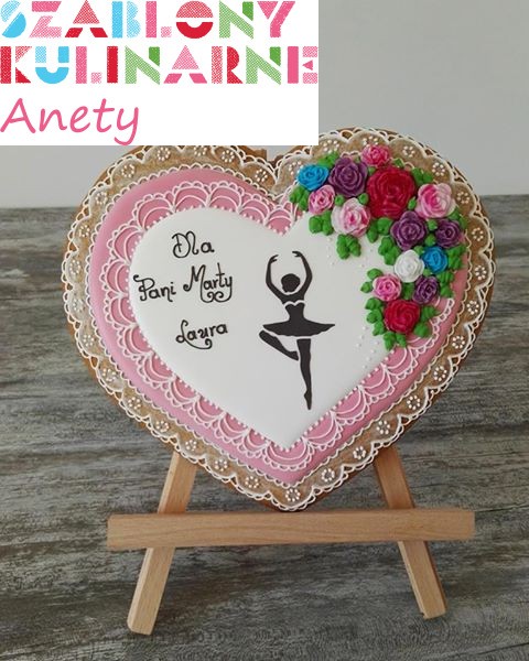 - Po nałożeniu lukru, delikatnie podnieść szablon trzymając za uchwyt i pozostawić dekorację do wyschnięcia