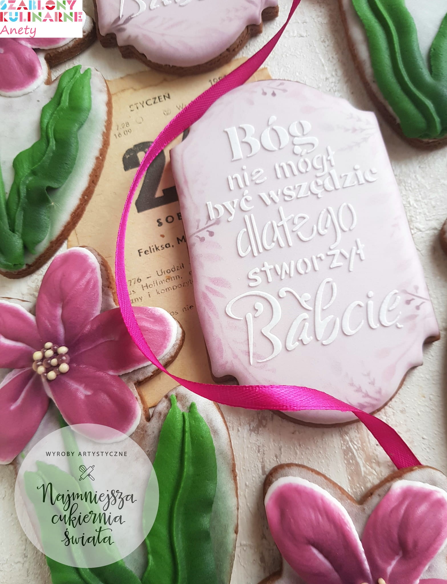 Szablon do ciasteczek do wręczenia babci z okazji Dnia Babci, urodzin, imienin i innych ważnych okazji.