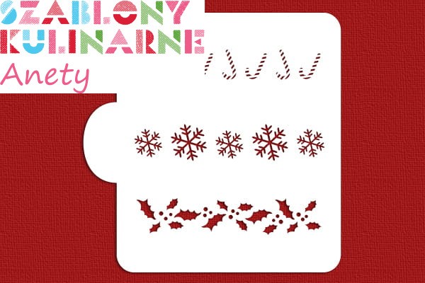Wzory w zestawie: laski, śnieżynki, kulki i listki ostrokrzewu