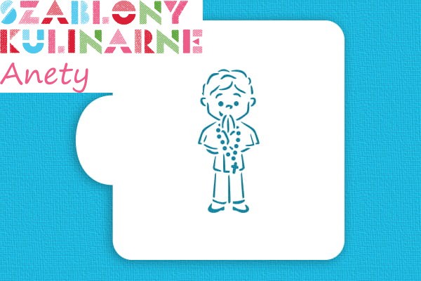 Wzór z chłopcem możesz wykorzystać do ciasteczek komunijnych, które podarujesz gościom przybyłym na uroczystość.