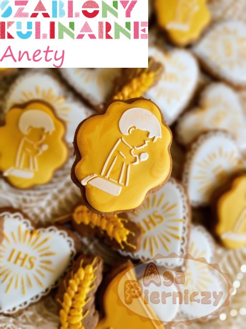 Wzór z chłopcem możesz wykorzystać do ciasteczek komunijnych, które podarujesz gościom przybyłym na uroczystość.