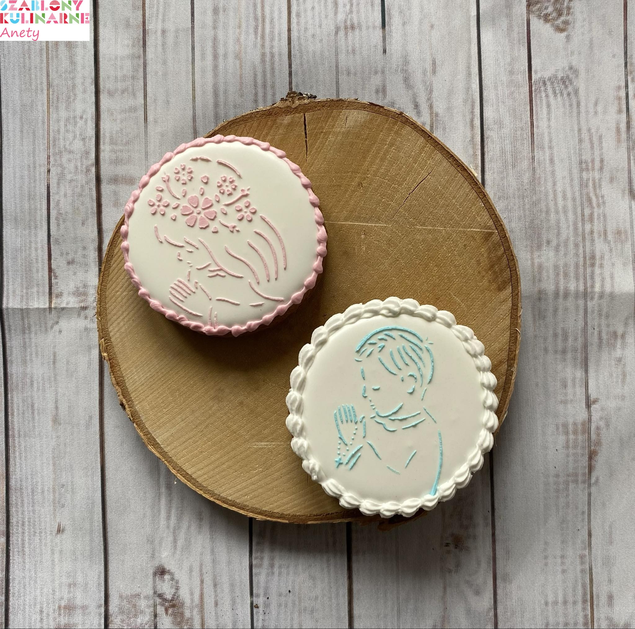 - Po nałożeniu lukru, delikatnie podnieść szablon trzymając za uchwyt i pozostawić dekorację do wyschnięcia