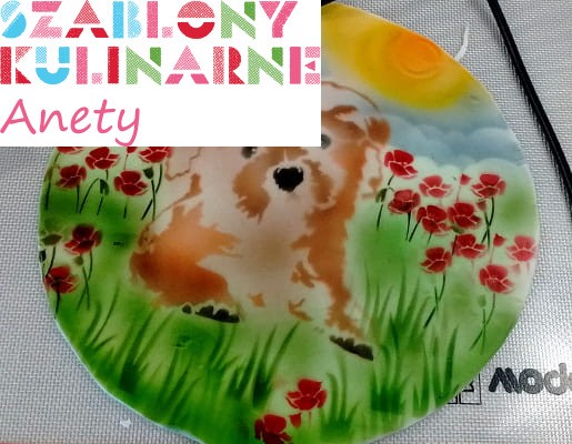 - Po nałożeniu lukru, delikatnie podnieść szablon trzymając za uchwyt i pozostawić dekorację do wyschnięcia