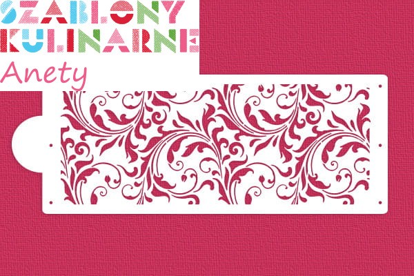 Przy użyciu szablonu możesz wykonać dekorację z lukru królewskiego, kremu maślanego, czy też barwników spożywczych (np. w spray'u). Otwory na końcach szablonu pozwolą Ci umocować go do tortu (wykałaczkami lub szpilkami) przed przystąpieniem do malowania wzoru.