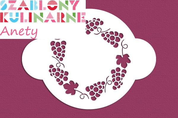 Przy użyciu szablonu z winogronami możesz udekorować np. komunijny tort, personalizując go pośrodku wzoru lub wykonując dekorację np. w postaci Hostii.