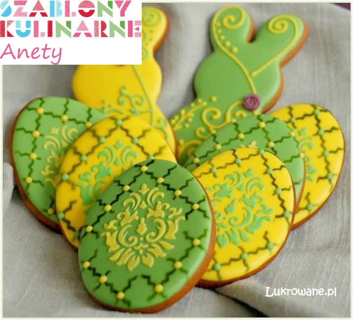 Wzór "koniczyna marokańska" jest idealny do stworzenia iście królewskich ciasteczek lub tortu. Wykorzystasz go na tło ciastka używając barwnika w spray'u (albo aerografu) lub stworzysz główną dekorację, malując np. lukrem królewskim i nanosząc miękkim pędzelkiem złoty barwnik w pyłku.