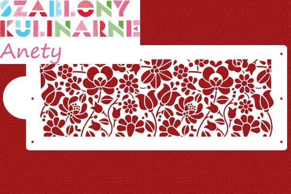 Szablon na bok tortu utrzymany w ludowym, kwiecistym stylu. Element serii Kwiaty folkowe.