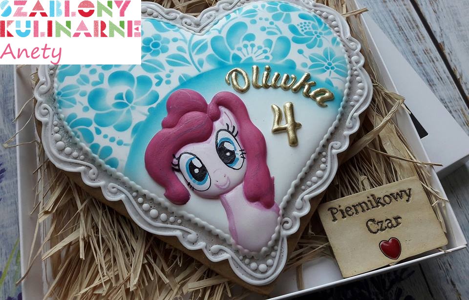 Przy użyciu szablonu możesz wykonać dekorację z lukru królewskiego, kremu maślanego, czy też barwników spożywczych (np. w spray'u). Otwory na końcach szablonu pozwolą Ci umocować go do tortu (wykałaczkami lub szpilkami) przed przystąpieniem do malowania wzoru.