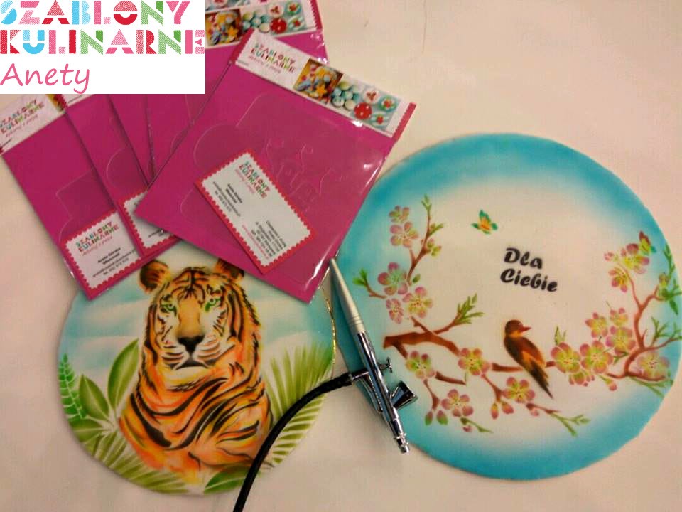 Przy użyciu szablonu możesz wykonać dekorację z lukru królewskiego, cukru pudru, kakao, czy też barwników spożywczych (np. w spray'u). Idealnie sprawdzi się aerograf.