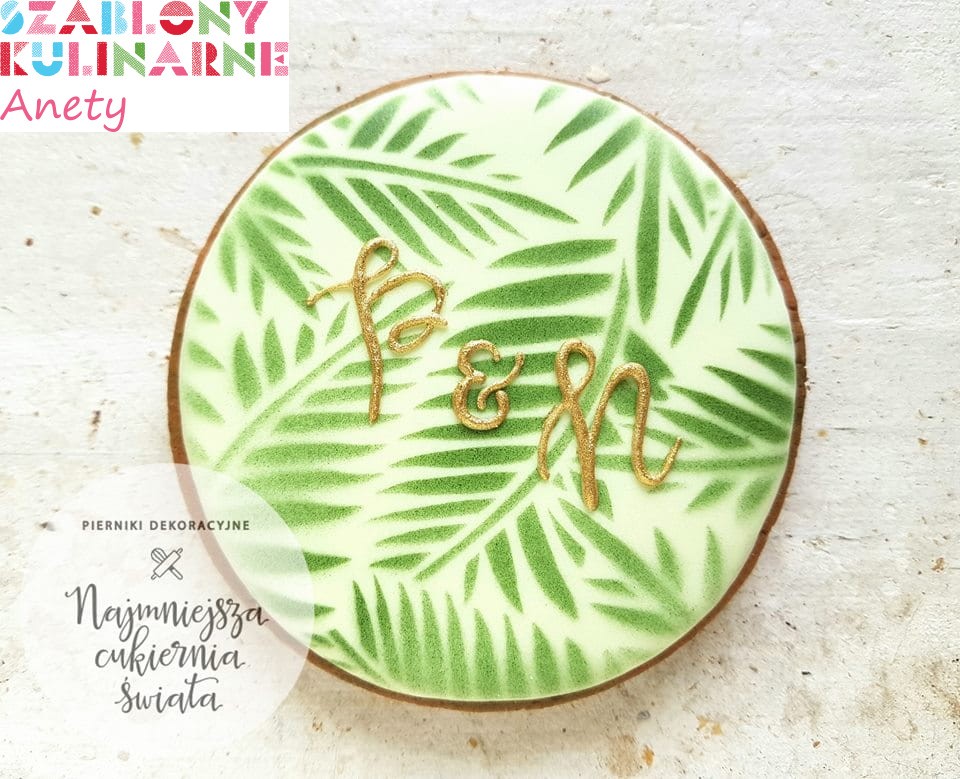 Większa wersja wzoru "Liście palmy" do ciastek. Szablon idealny do dekoracji dużych ciastek, tortu lub podkładu pod tort.