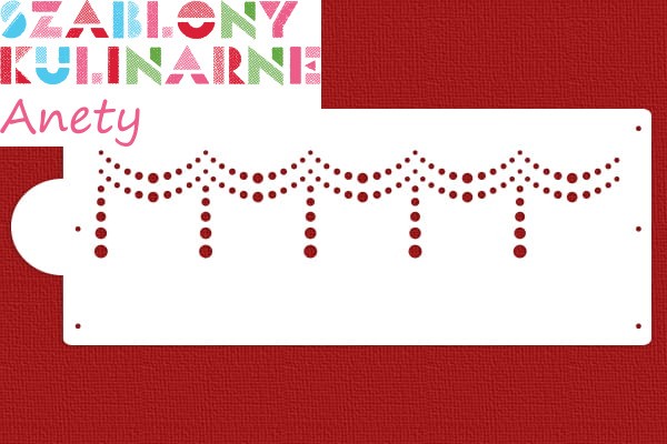 Przy użyciu szablonu możesz wykonać dekorację z lukru królewskiego, kremu maślanego, czy też barwników spożywczych (np. w spray'u). Otwory na końcach szablonu pozwolą Ci umocować go do tortu (wykałaczkami lub szpilkami) przed przystąpieniem do malowania wzoru.