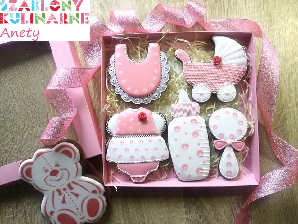 Przy użyciu szablonów możesz wykonać dekorację z lukru królewskiego, cukru pudru, kakao, czy też barwników spożywczych, np. w spray'u.