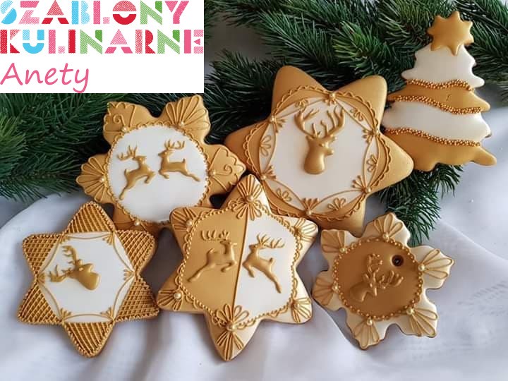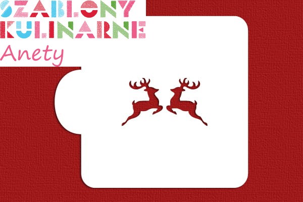 Dwa skoczne renifery będą ciekawą dekoracją Twoich bożonarodzeniowych ciasteczek lub pierniczków.