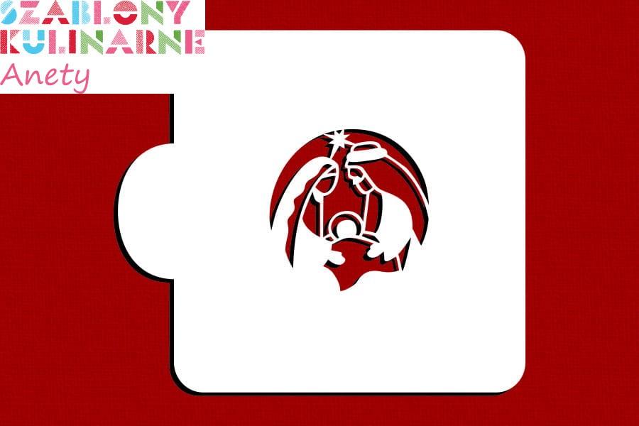 Szablon "Dzieciątko" przeznaczony jest do wykonania bożonarodzeniowej dekoracji na piernikach lub ciastkach. Wielkość dopasowana jest do naszej foremki KOŁO 6 cm lub KOŁO 7,5 cm.