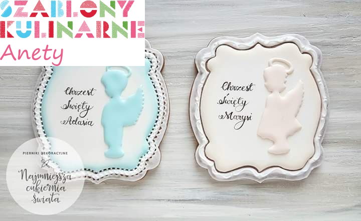 Wzór z dziewczynką możesz wykorzystać do ciasteczek komunijnych lub na chrzest. Ciekawie będą prezentowały się z nią także wypieki bożonarodzeniowe.