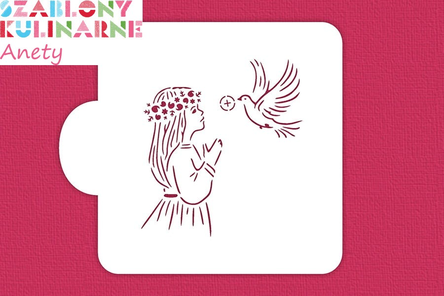 SZABLON Dziewczynka komunijna z gołębiem