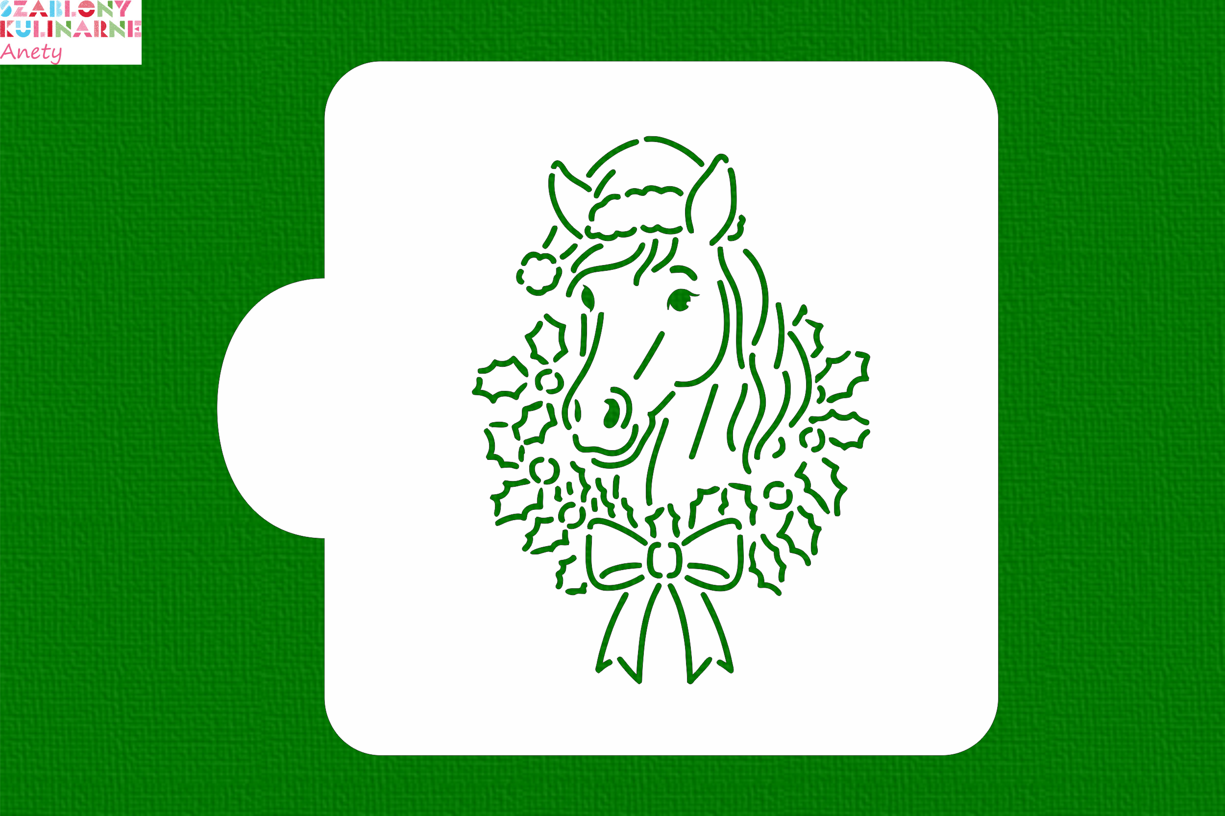 SZABLON Głowa konia w wianku świątecznym - kolorowanka / kontur