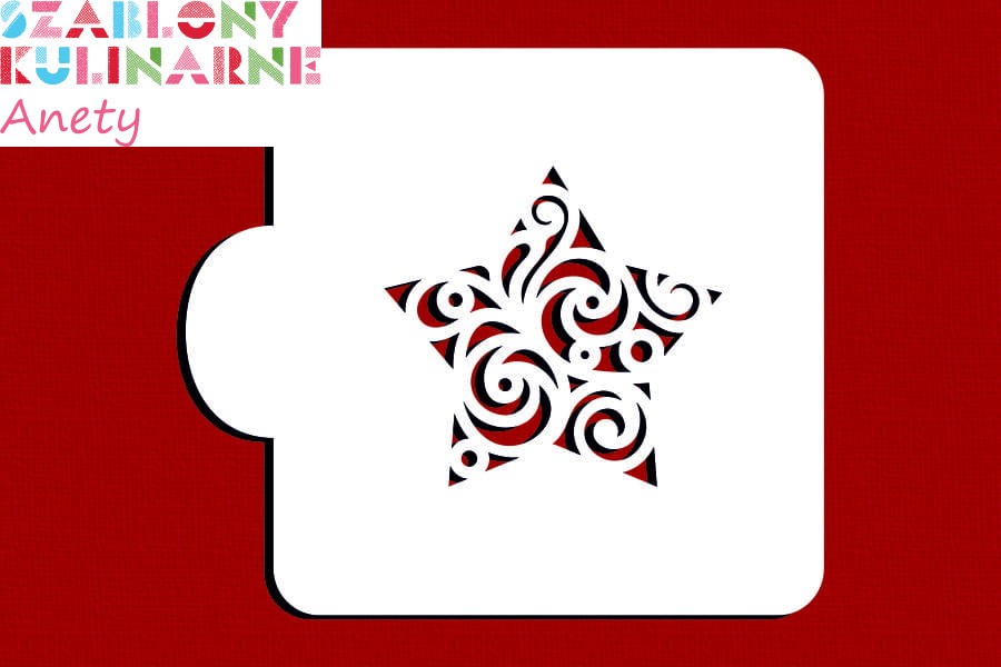 Wielkość wzoru: ok. 7,1 x 6,8 cm (pasuje do foremki GWIAZDA PIĘCIORAMIENNA 8,4 x 8 cm)