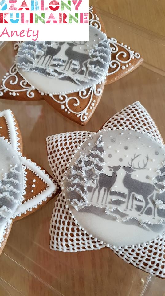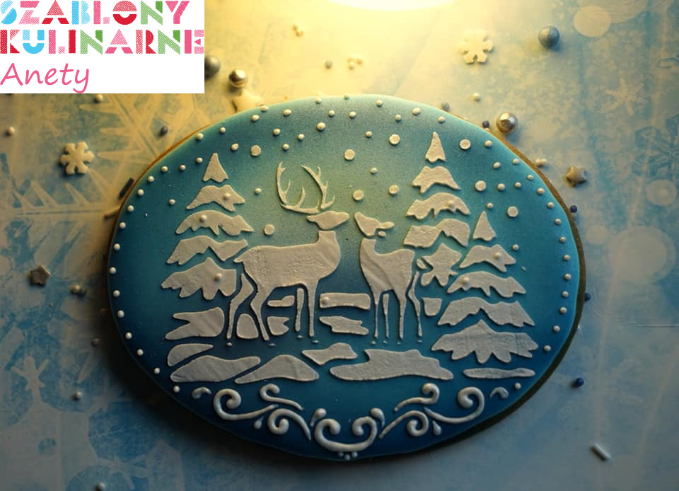 Przy użyciu szablonu możesz wykonać dekorację z lukru królewskiego, cukru pudru, kakao, czy też barwników spożywczych (np. w spray'u).