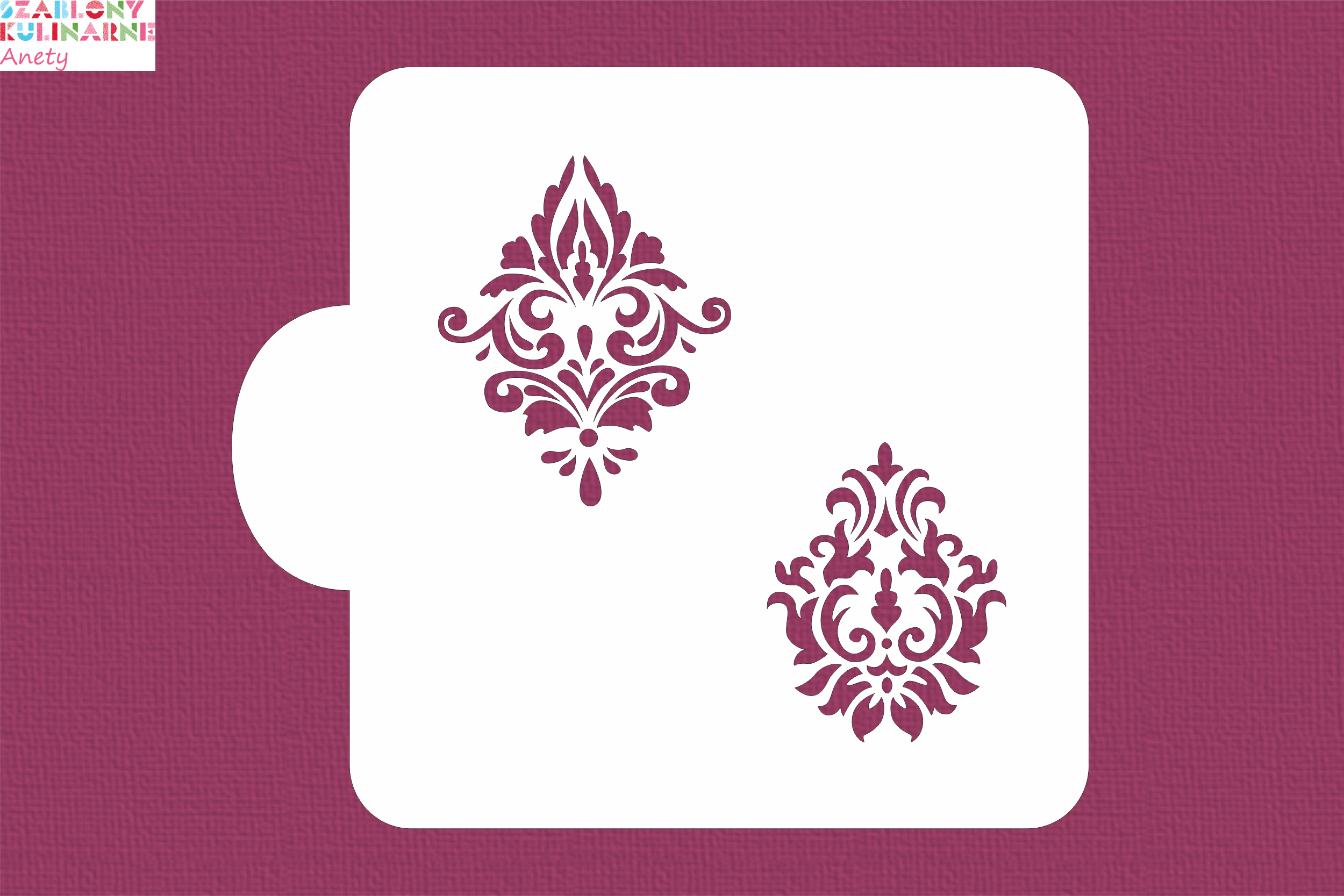 Dzięki szablonowi "Kaszmir" stworzysz eleganckie dekoracje na ciasteczkach lub muffinkach przygotowywanych na przyjęcie weselne, uroczystą kolację, czy chrzciny maleństwa. Ciasteczka z pięknymi wzorami, spakowane w eleganckie pudełeczko będą także wyjątkowym upominkiem dla wymagających.