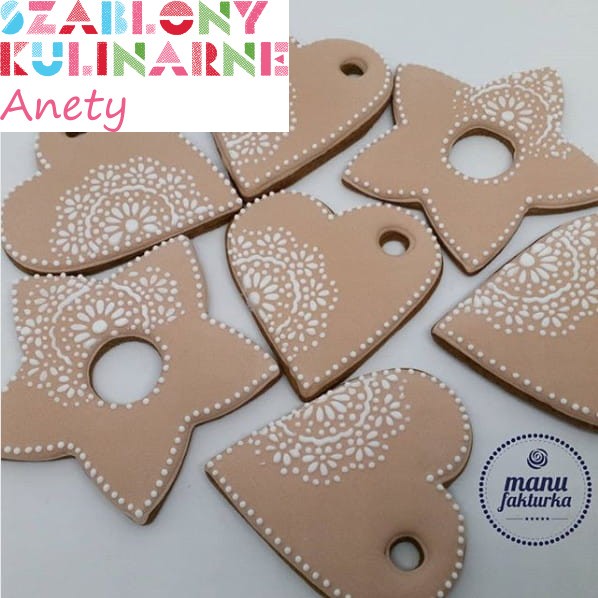 Modny, filigranowy wzór do ciastek i pierniczków. Od szablonu możesz udekorować środek lub brzeg wypieku.