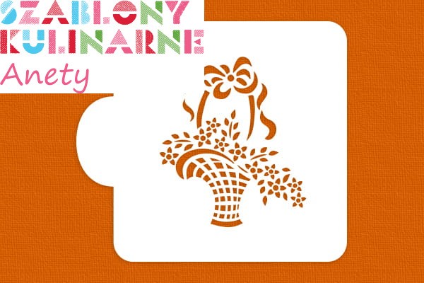 Kosz z kwiatami to wzór uniwersalny. Udekorujesz z nim wiosenne, wielkanocne, czy też urodzinowe ciasteczka.