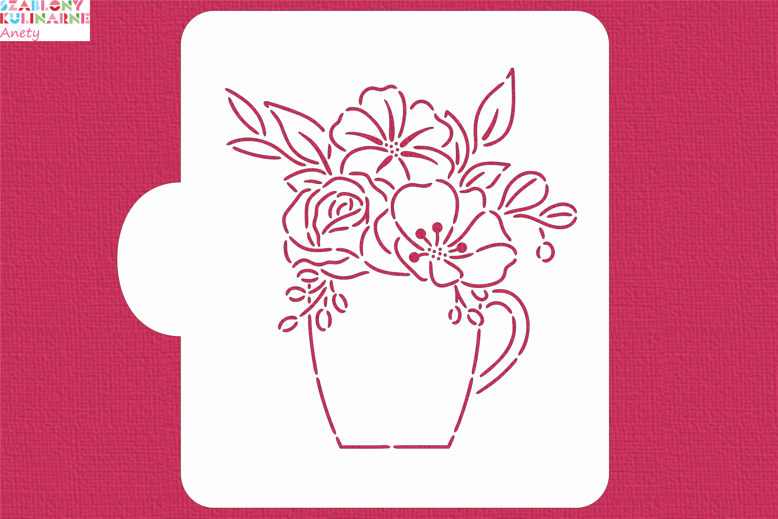 SZABLON Kwiaty w kubku - kolorowanka / kontur