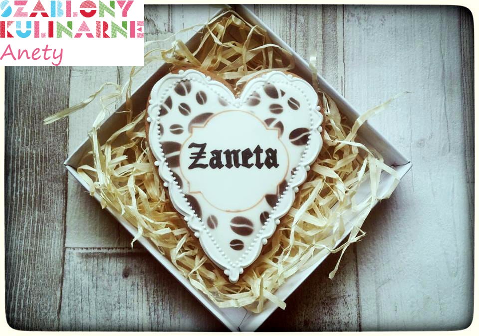 - Po nałożeniu lukru, delikatnie podnieść szablon trzymając za uchwyt i pozostawić dekorację do wyschnięcia