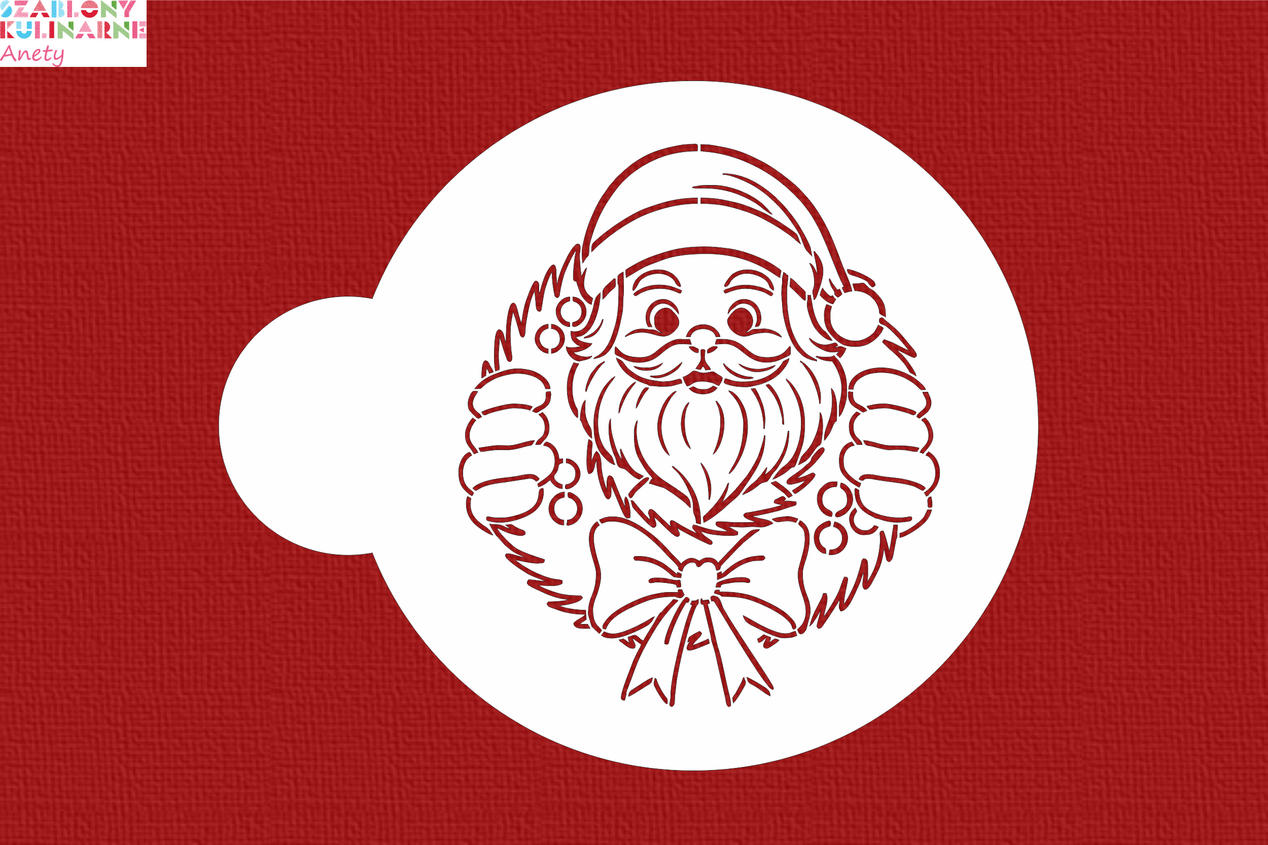 SZABLON Mikołaj w świątecznym wianku - kolorowanka / kontur