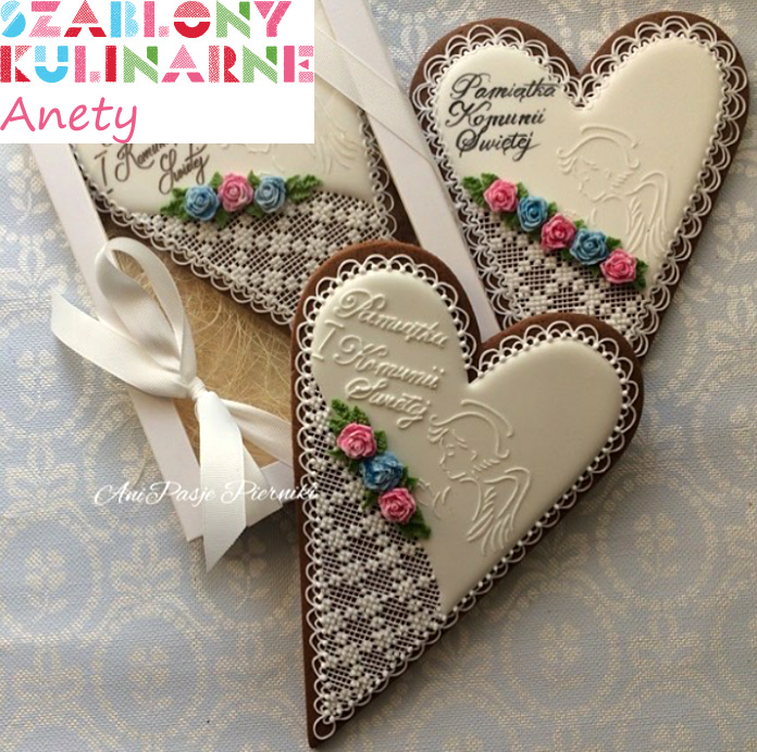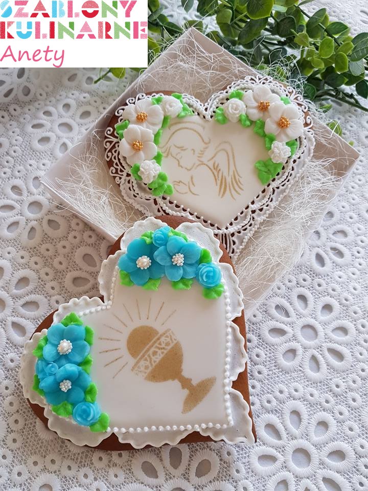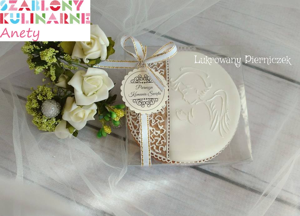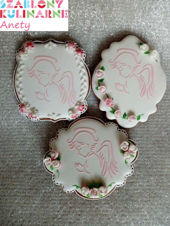 Wzór z aniołkiem możesz wykorzystać do ciasteczek komunijnych lub na chrzest. Ciekawie będą prezentowały się z nim także wypieki bożonarodzeniowe.