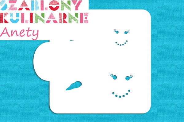 Pani bałwanek - umożliwia namalowanie czarnym lukrem oczu i ust, zaś pomarańczowym - nosa.