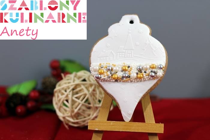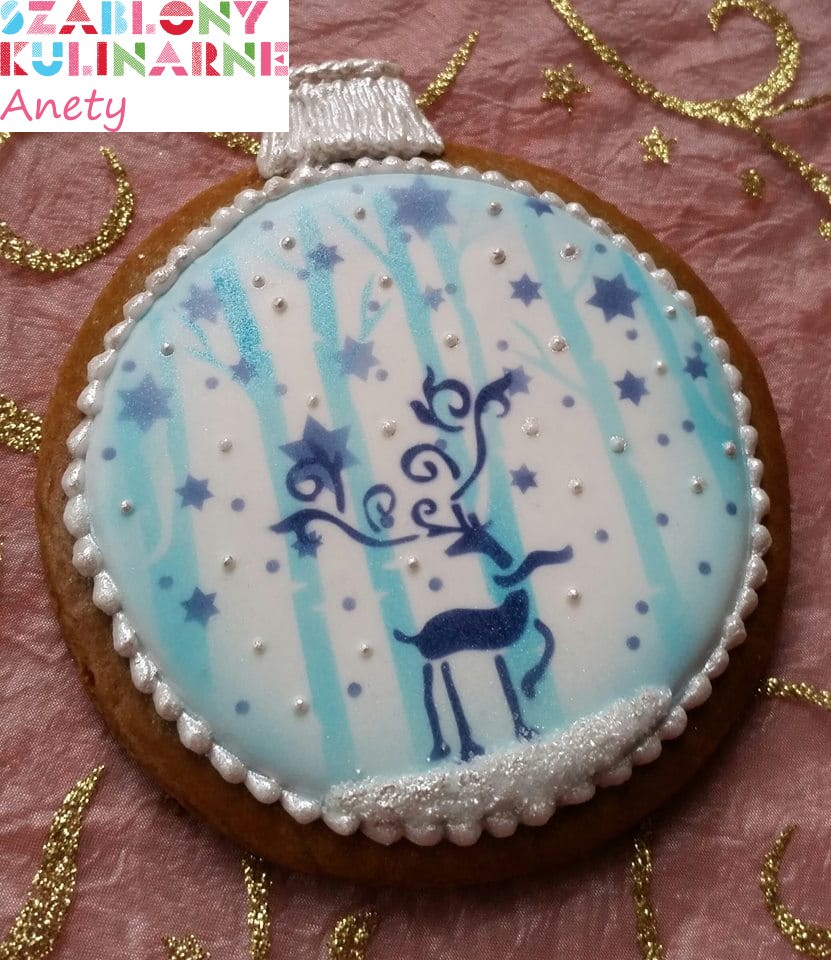 Wzór idealny do malowania białym lukrem na pierniku. Kształt wzoru będzie pasował do piernikowej okrągłej bombki (wkrótce w ofercie). Puste pole pod obrazkiem może posłużyć do personalizacji (Iogo firmy, imię, krótka dedykacja).