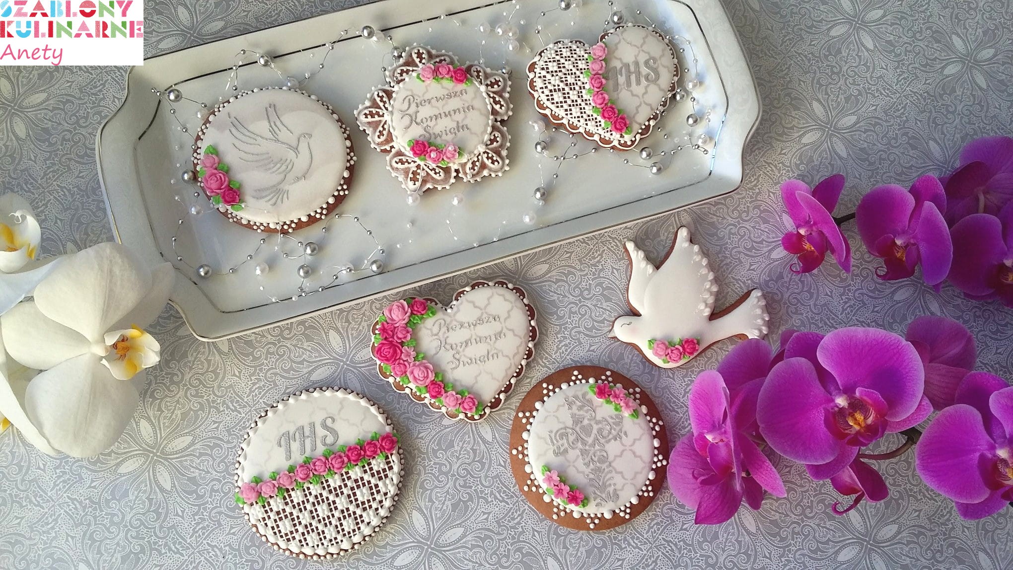 Eleganckie napisy do ciasteczek komunijnych.