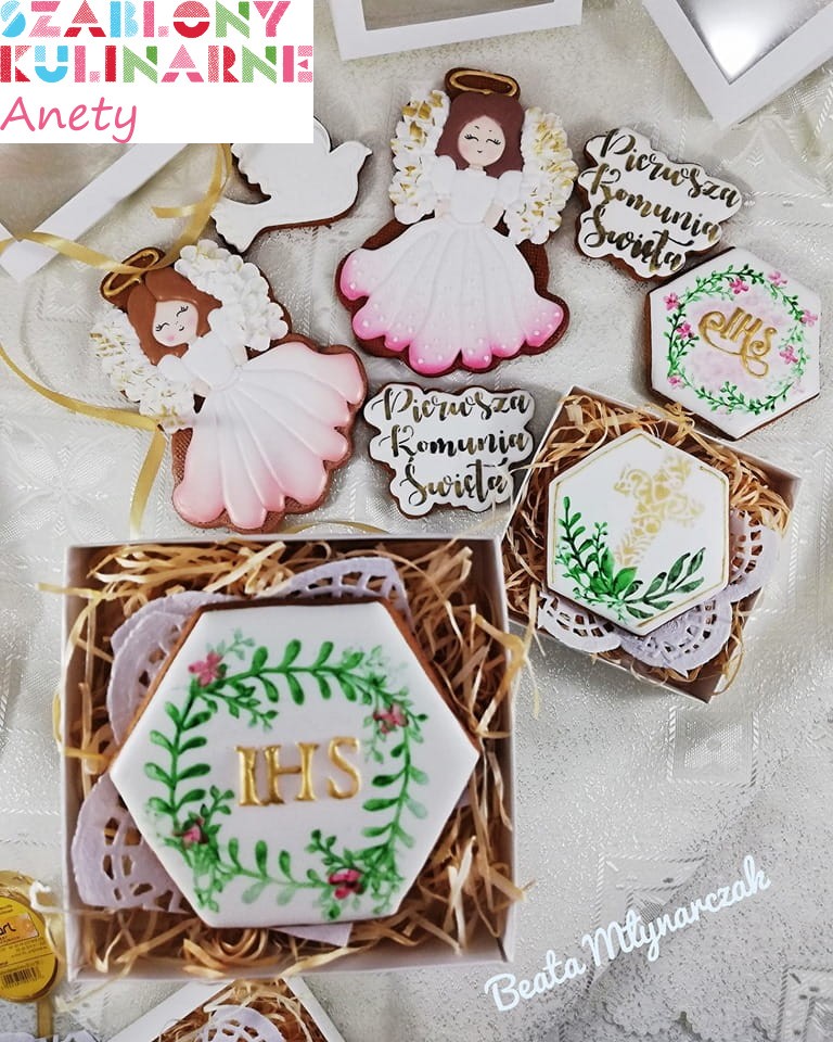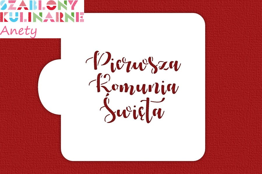 Napis do ciasteczek i pierniczków przygotowywanych z okazji Pierwszej Komunii Świętej. Sprawdzi się też na niedużym torcie.