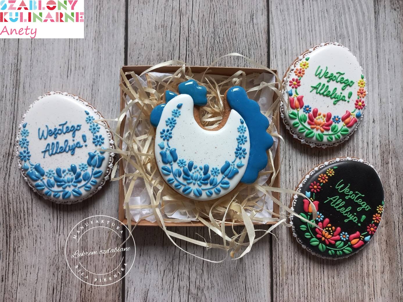 - Można stosować samodzielnie przygotowany lukier królewski o odpowiedniej konsystencji (nie może być za rzadki, ani zbyt gęsty) lub gotowy lukier w tubie (polecamy lukier w tubie marki Wilton)