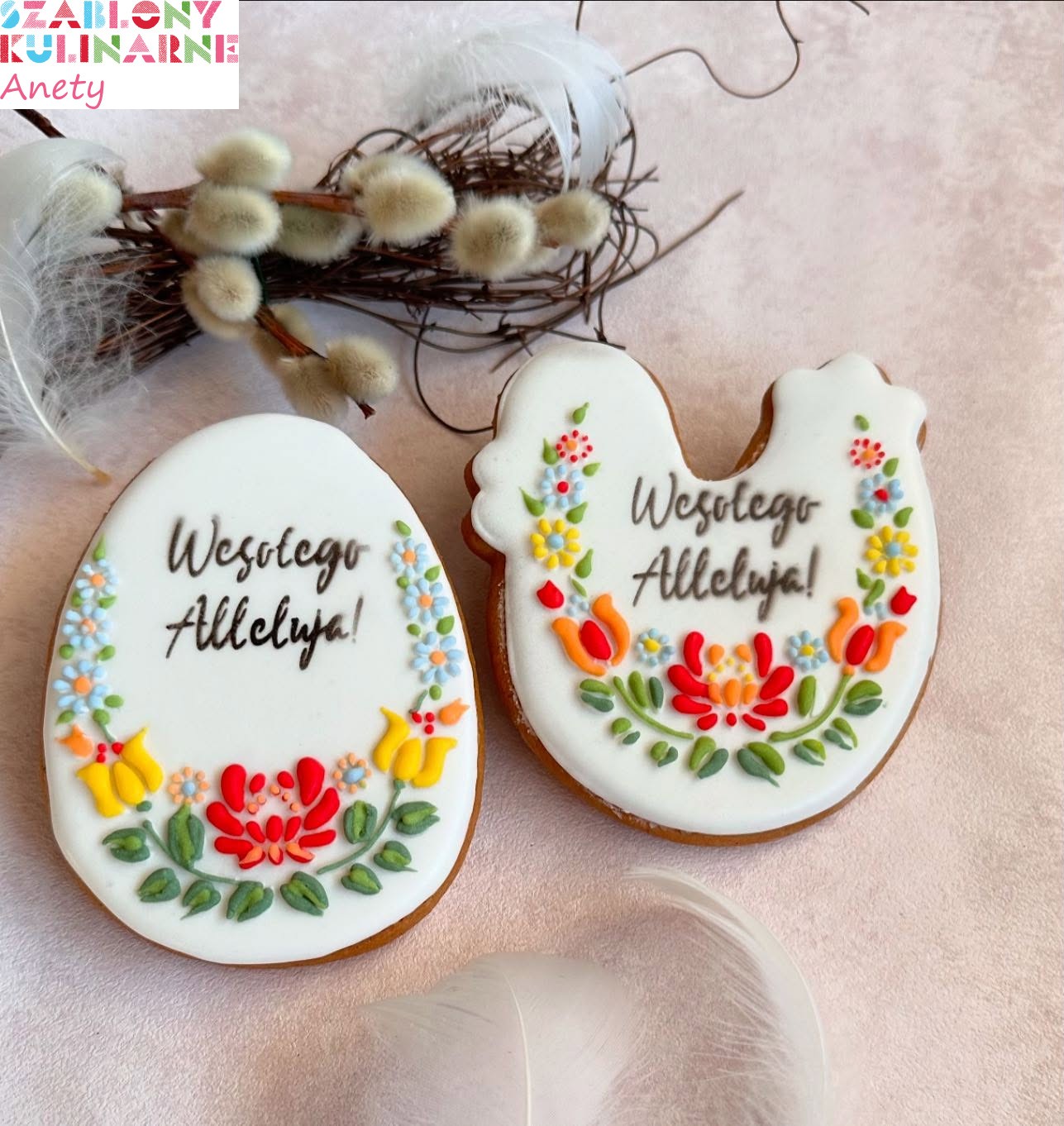 - Po nałożeniu lukru, delikatnie podnieść szablon trzymając za uchwyt i pozostawić dekorację do wyschnięcia
