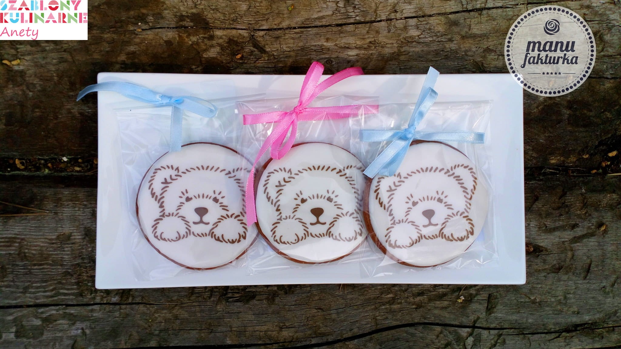 Uroczy miś będzie słodką dekorację ciasteczek na chrzest, I urodziny maleństwa, czy Dzień Dziecka :). Do wzoru idealnie dopasujesz naszą foremkę PLUSZOWY MIŚ.