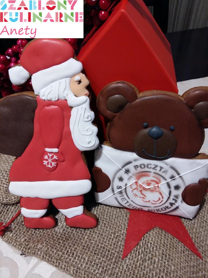 Wzór idealny do mikołajkowych pierniczków oraz zestawów bożonarodzeniowych. Pierniczek z wizerunkiem św. Mikołaja może być dołączony do prezentu w formie bilecika.