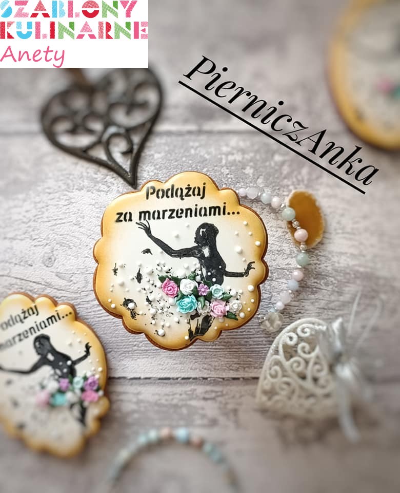 - Po nałożeniu lukru, delikatnie podnieść szablon trzymając za uchwyt i pozostawić dekorację do wyschnięcia
