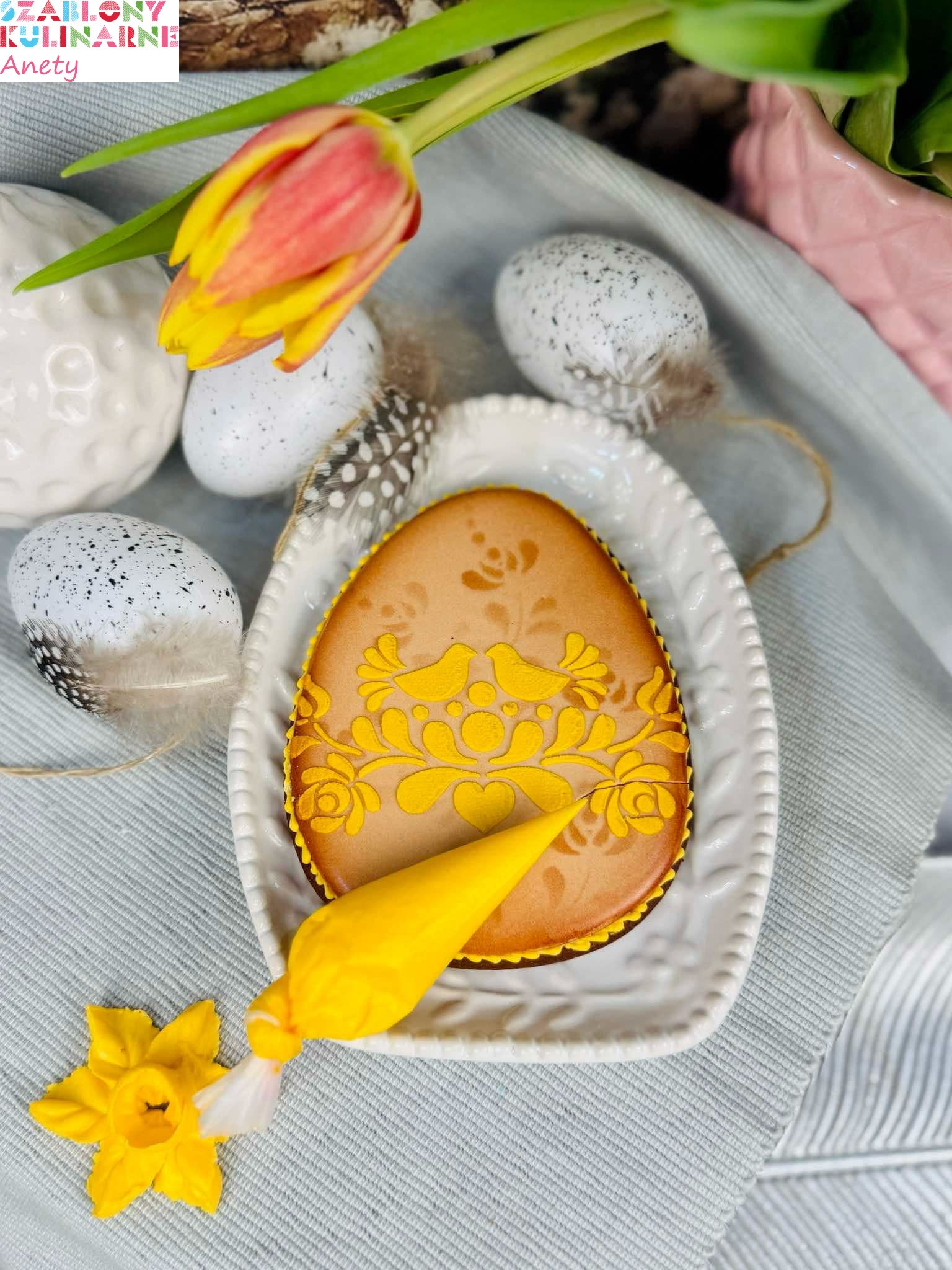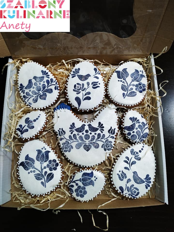 Wzór z ptaszkami jest idealny do ciastek z motywem ludowym. Wzór z ptaszkami do tortu znajdziesz tutaj.