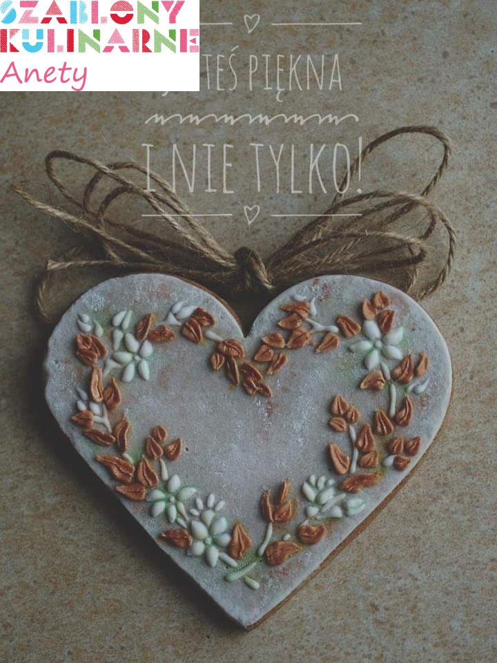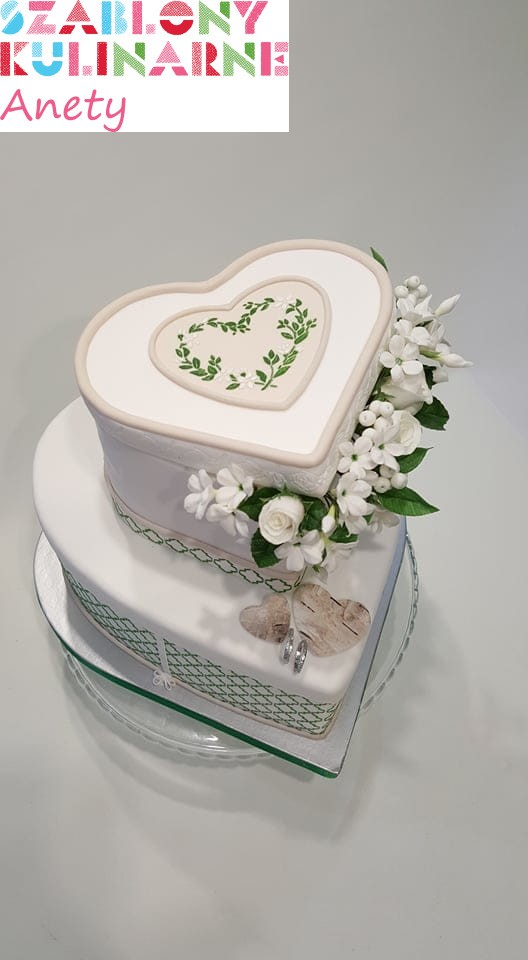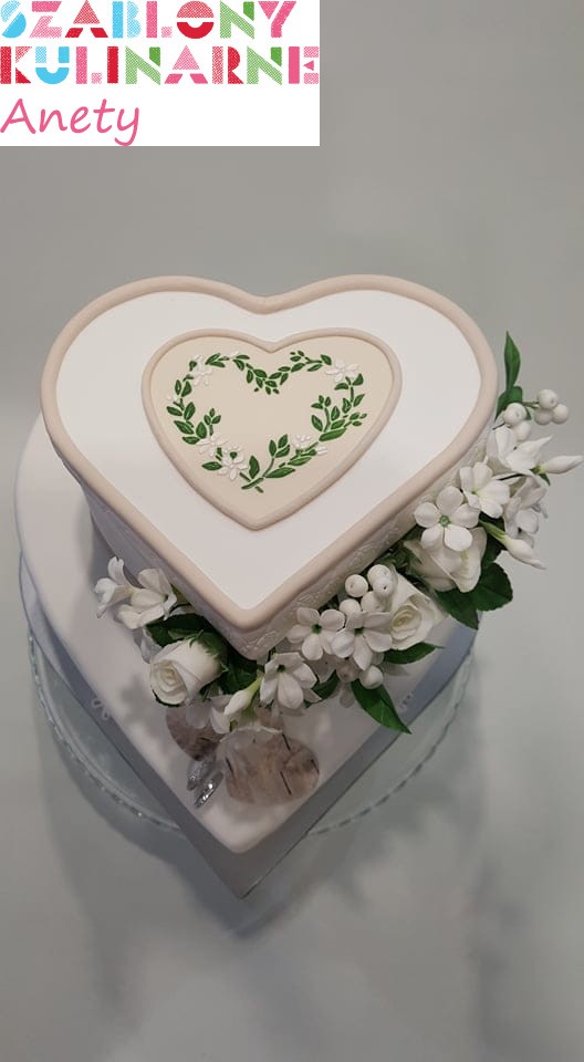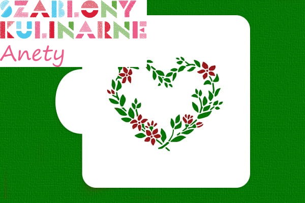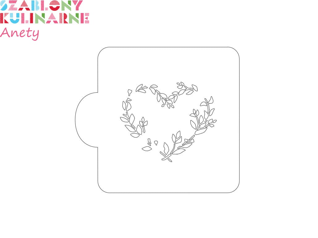 Wzór: 2 szablony - listki ułożone w kształcie serca oraz kwiatki jako uzupełnienie sercowego wzoru/ramki