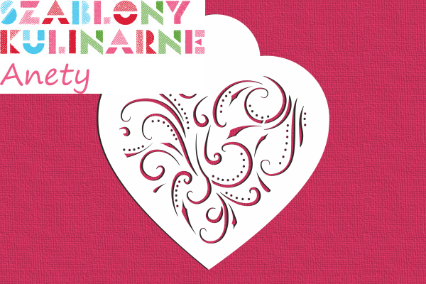 Serce kojarzy się z miłością. Dzięki naszemu szablonowi w kształcie serca, z romantycznym wzorem z zawijasami, udekorujesz spory piernik lub ciastko nadając mu oryginalny wygląd i wzbudzając podziw obdarowanego :-). Do wzoru dopasujesz foremkę SERCE DUŻE.