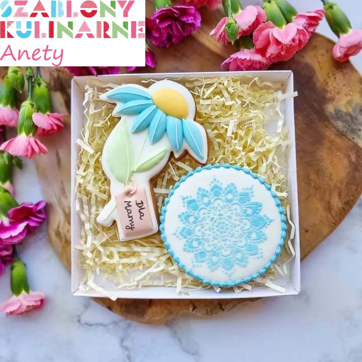 Przy użyciu szablonu możesz wykonać dekorację z lukru królewskiego, cukru pudru, kakao, czy też barwników spożywczych (np. w spray'u). Szablon jest idealny do dekoracji przy użyciu AEROGRAFU.