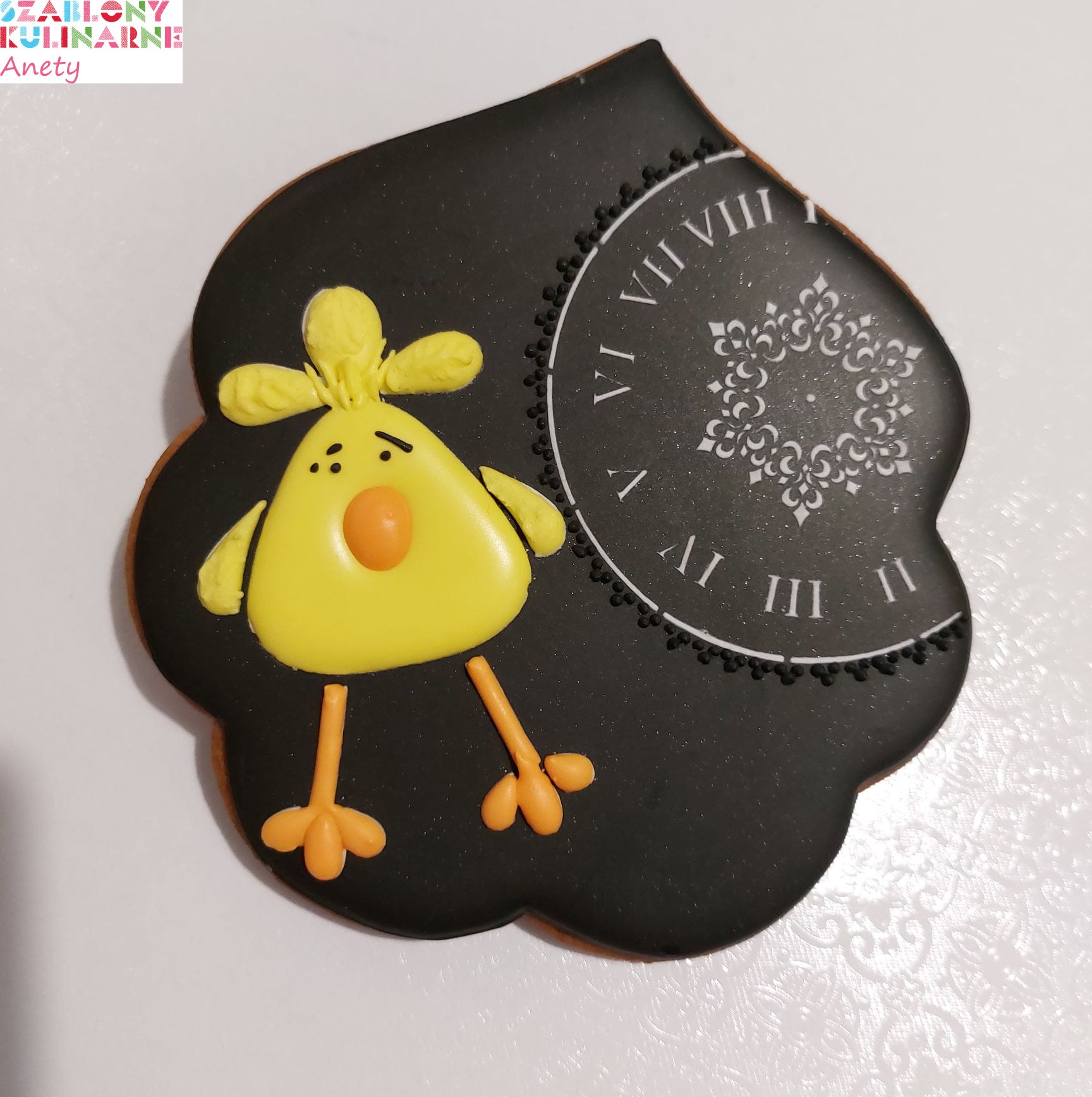 - Po nałożeniu lukru, delikatnie podnieść szablon trzymając za uchwyt i pozostawić dekorację do wyschnięcia