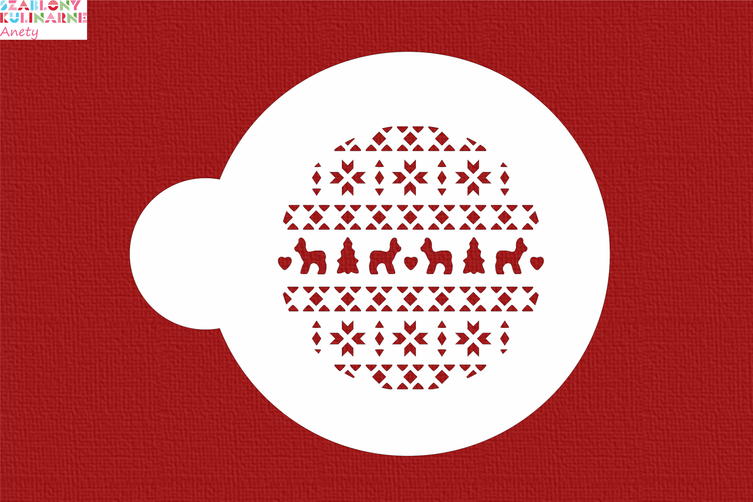 - Ułożyć szablon na rozwałkowanej masie cukrowej lub ostudzonym ciastku pokrytym lukrem królewskim