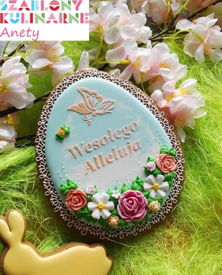 - Po nałożeniu lukru, delikatnie podnieść szablon trzymając za uchwyt i pozostawić dekorację do wyschnięcia